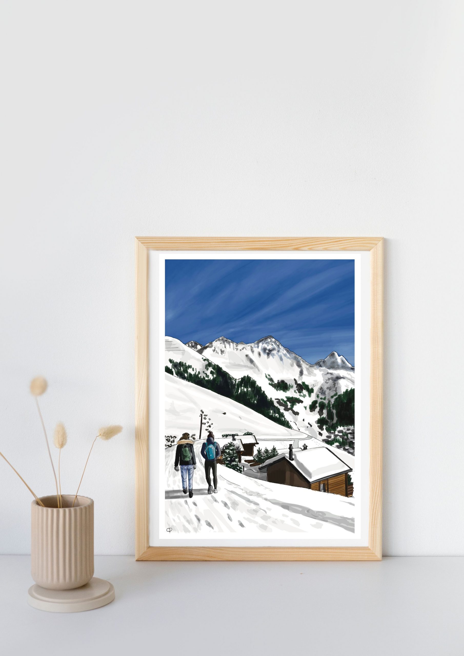 L’affiche existe dans plusieurs versions : avec ou sans marcheurs, avec ou sans titre. N’hésitez pas à me contacter pour me partager votre préférence pour votre commande!