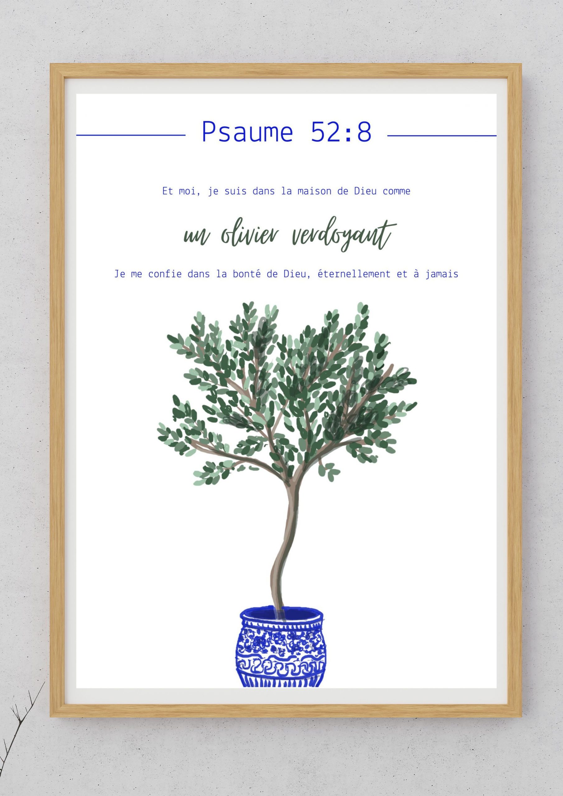« Et moi, je suis dans la maison de Dieu comme un olivier verdoyant. Je me confis à la bonté de Dieu, éternellement et à jamais ». Psaume 52:8.