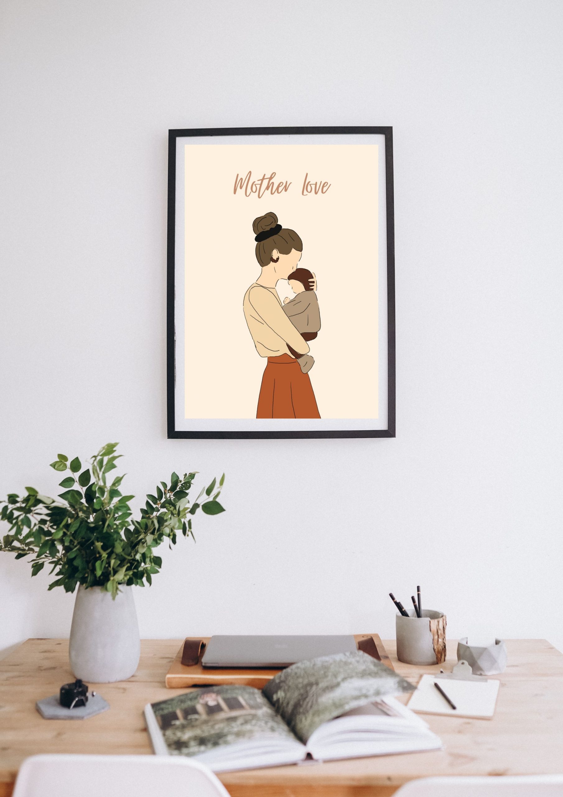 Mother Love, c’est une illustration que j’ai adoré dessiner (comme toutes les autres à peu près, cela dit). Mais dans celle-ci, j’y ai trouvé de la douceur, de la délicatesse. Celle d’une maman qui dépose tendrement un baiser sur le front de son enfant et où l’amour se passe bien de mot mais se vit dans un acte gratuit et furtif.
